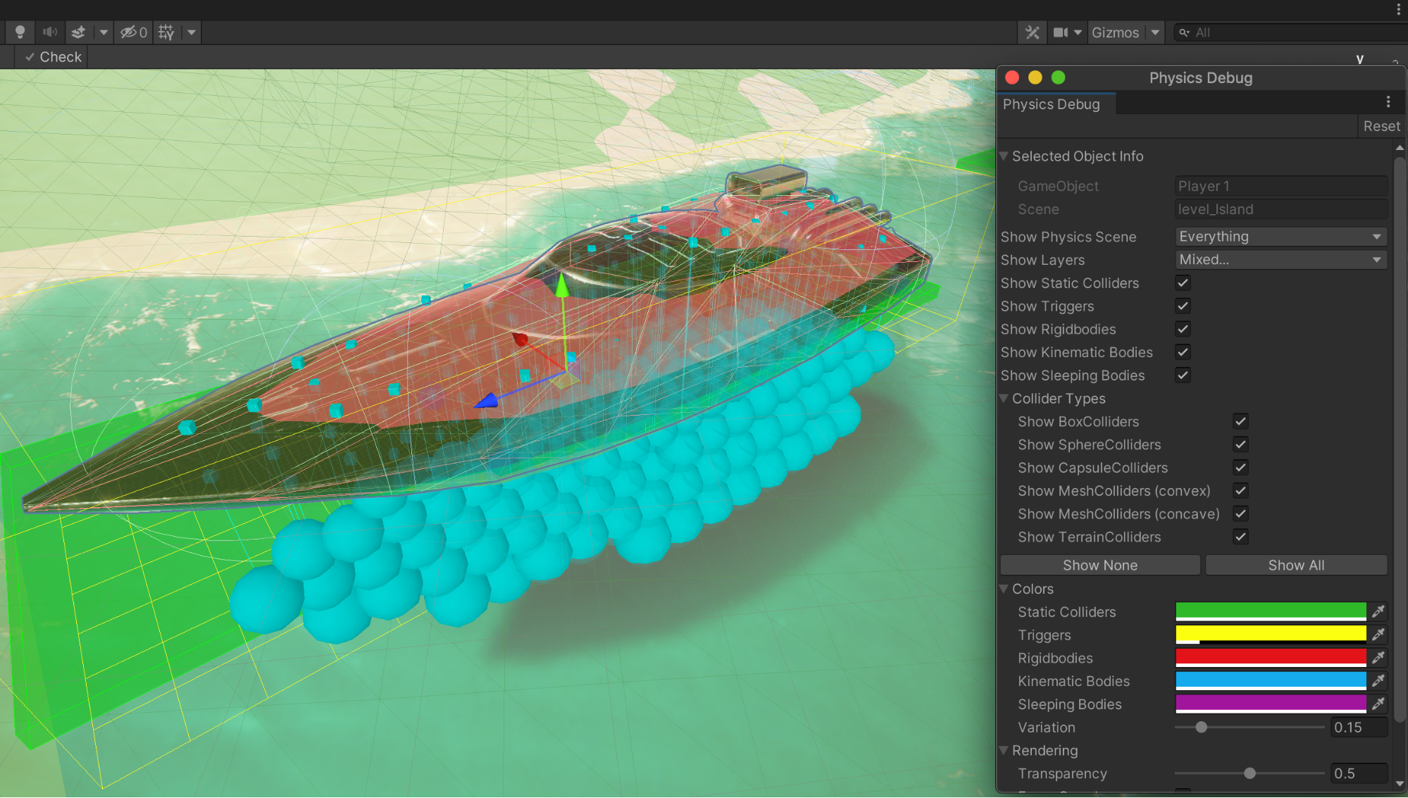 - Используйте дебаг визуализатор Window > Analysis > Physics Debugger.