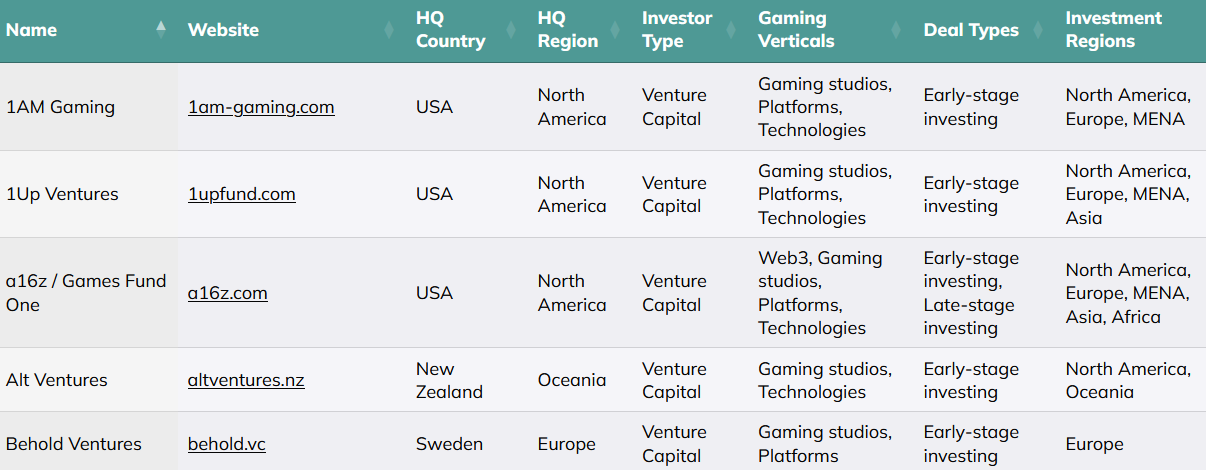 InvestGame опубликовала базу данных с фондами, инвестирующими в игровую индустрию