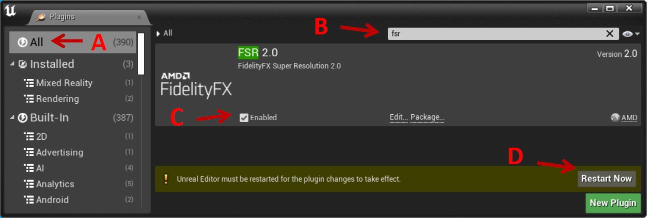 Как использовать плагин AMD FidelityFX Super Resolution 2 (FSR 2) в Unreal Engine