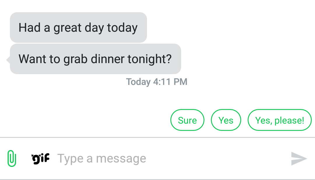 Новая функция, появляющаяся в чатах, заключается в предоставлении пользователю выбора предлагаемых ответов либо в виде действий над уведомлением, либо внутри самого приложения.