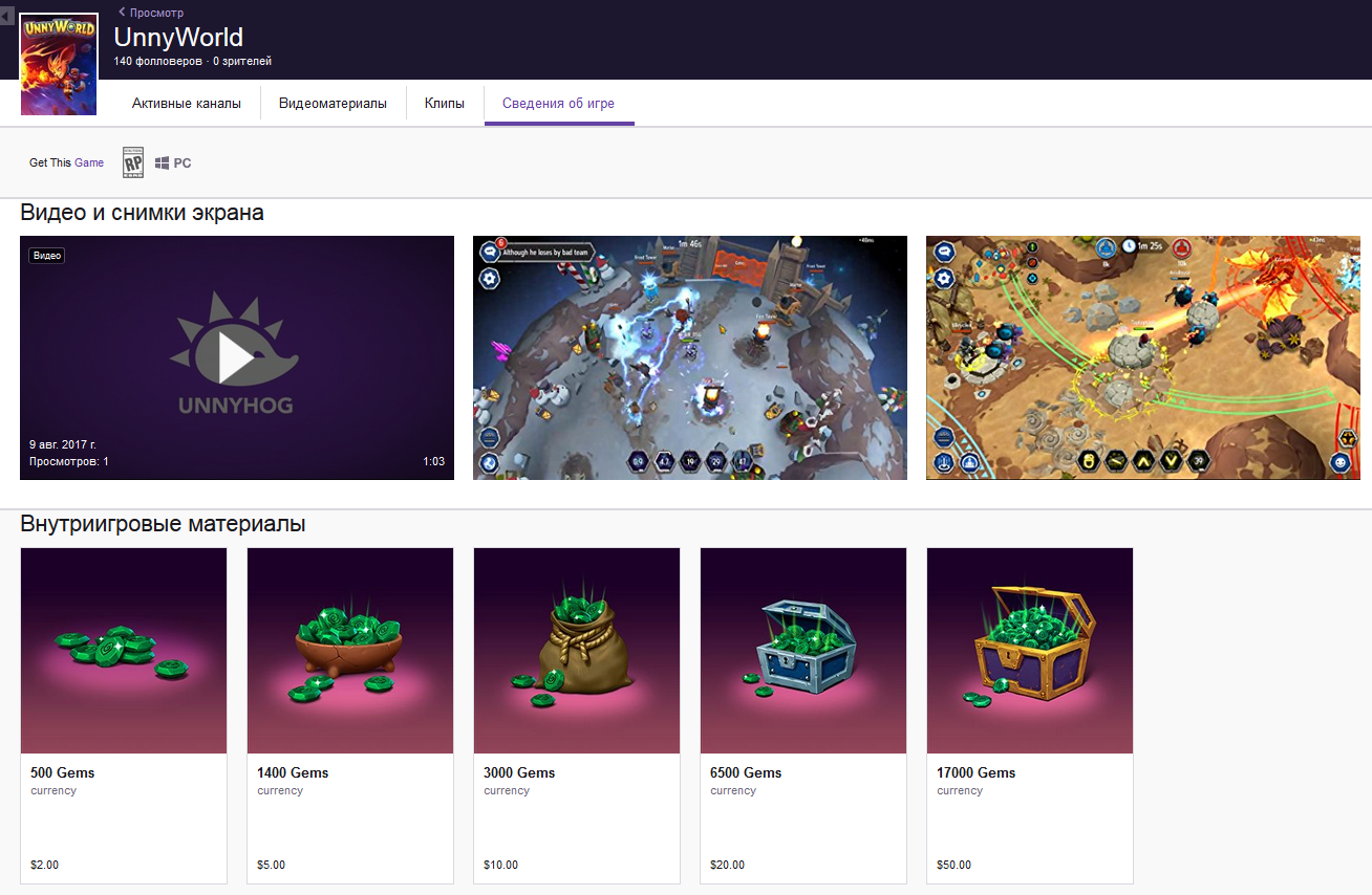 Мы даже договорились с https://www.twitch.tv/ , чтобы на странице игры можно было совершать внутриигровые покупки.