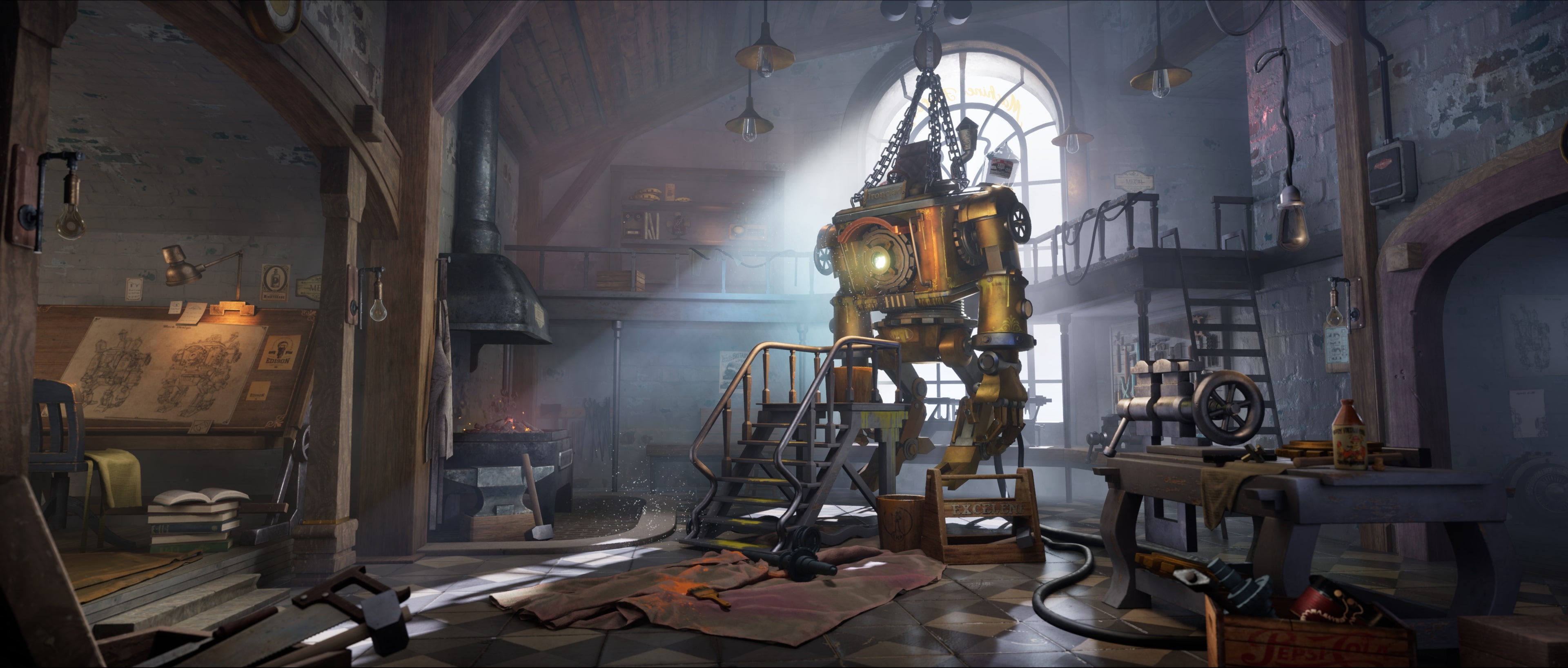 Лим Цзюнь Лян рассказал о сцене Ironclad Workshop с мрачной атмосферой на основе 2D-коцепта, поделившись опытом создания и приёмами, позволяющими сэкономить время и обеспечить единообразный художественный стиль.