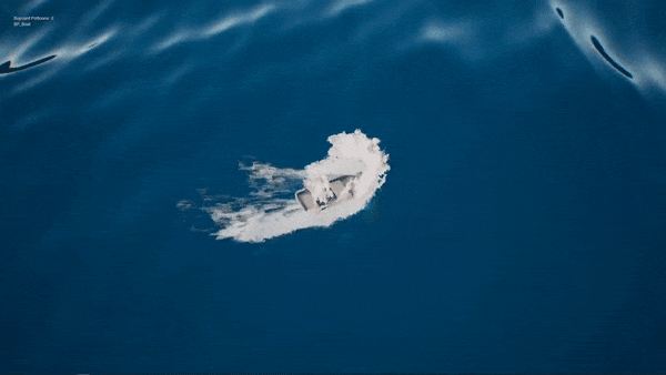 Основа эффекта с помощью SDF (Signed Distance Field) сферы, но положение Y фиксировано, так что под ним создаётся отверстие. Чтобы сделать его более похожим на жидкость, это отверстие и стороны водопада искажены синусоидальной волной и обрезаны по альфа-каналу. Шум используется для добавления пены, чтобы больше напоминало текущую воду.