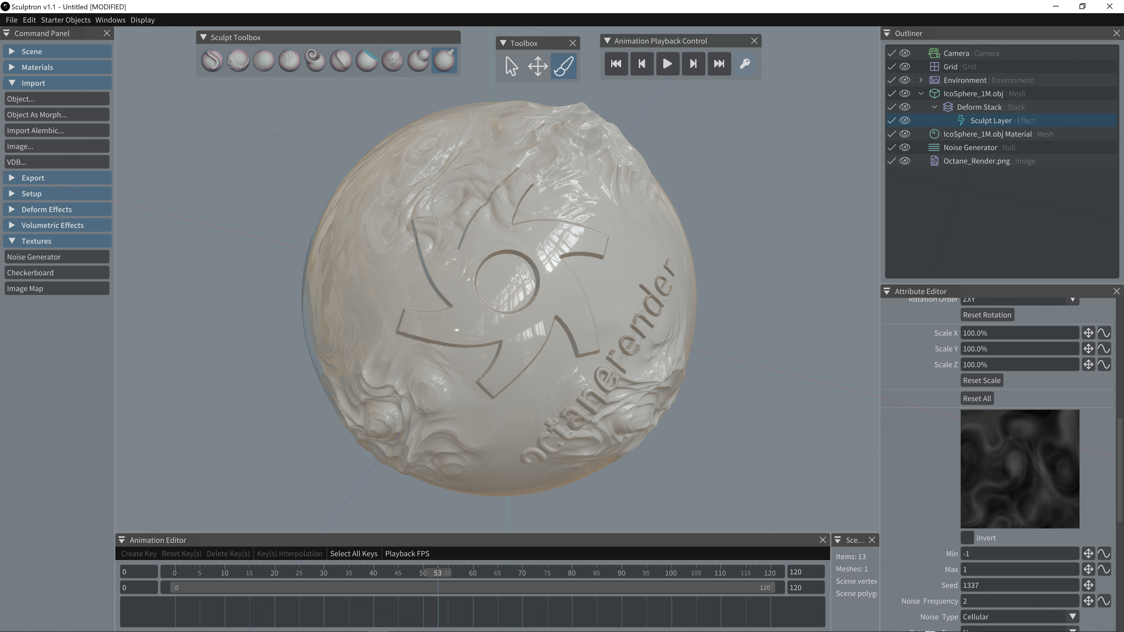 Вышел Sculptron 1.1 с базовой поддержкой Alembic и большей гибкостью при работе с процедурными текстурами