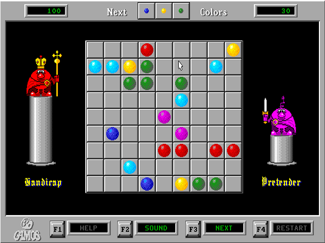 В игре на экране показано поле, в случайные клетки на котором программа выставляет шарики разных цветов. За один ход игрок может передвинуть один шарик, выделив его и указав его новое местоположение. Для совершения хода необходимо, чтобы между начальной и конечной клетками существовал путь из свободных клеток. Цель игры состоит в удалении максимального количества шариков, которые исчезают при выстраивании шариков одного цвета. При исчезновении ряда шариков новые шарики не выставляются. В остальных случая каждый ход выставляются новые шарики.