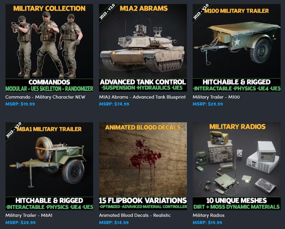 Большой пак с ассетами персов, оружия, окружения и прочего-прочего на военную тему для Unreal Engine.