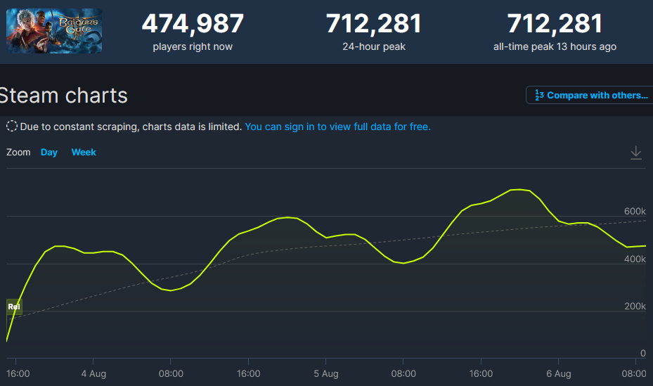 Онлайн Baldur’s Gate 3 в Steam превысил 800 тысяч игроков