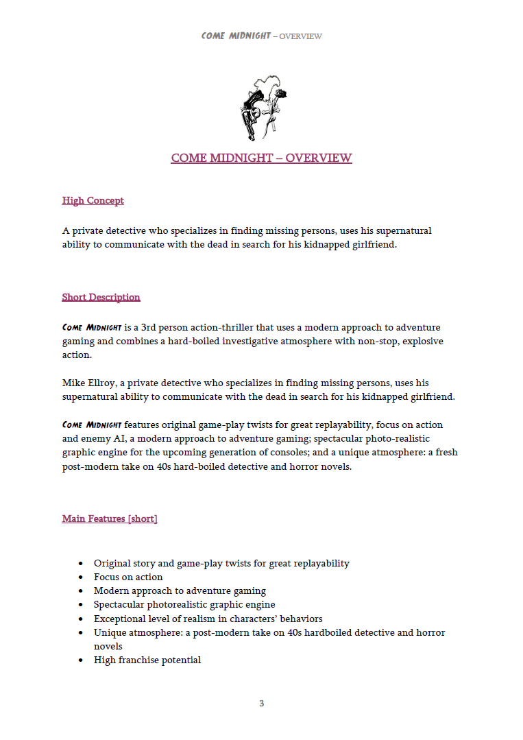 После нескольких месяцев разработчики решили, что у них достаточно материала, чтобы начать искать издателя. У них был документ с описанием проекта…
