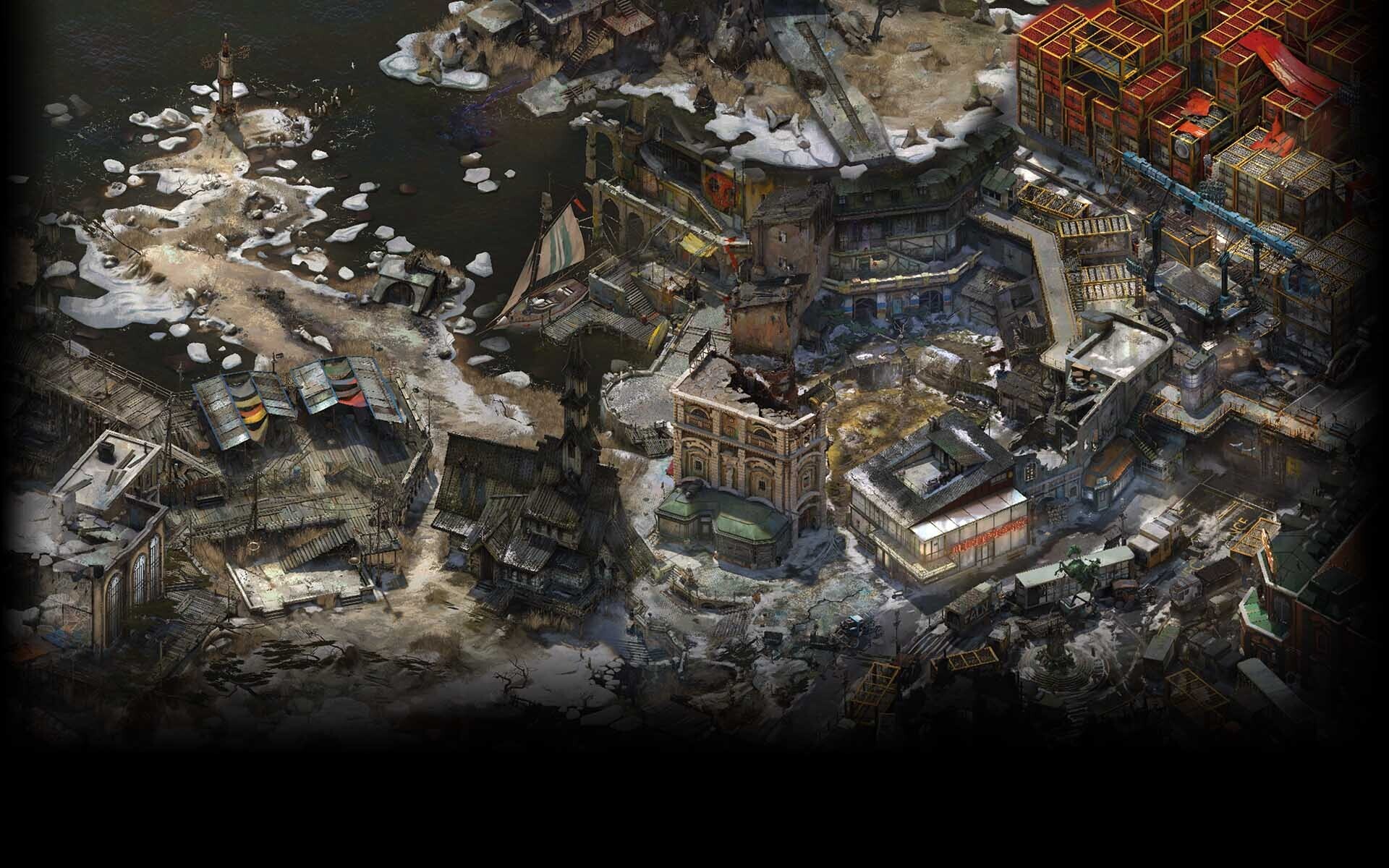 Играя в Disco Elysium помимо истории автора очень впечатлило визуальное исполнение. При всей технической простоте игры она выдаёт очень приятную картинку. Как им удалось сделать такую большую локацию набережной с уникальной детализацией без экранов загрузки? Вместо повторяющихся домиков с расставленными по разному ящиками, каждое здание выглядит по своему и имеет уникальные отпечатки времени в виде разрушенных стен, граффити или огромной мозаики на брусчатке.