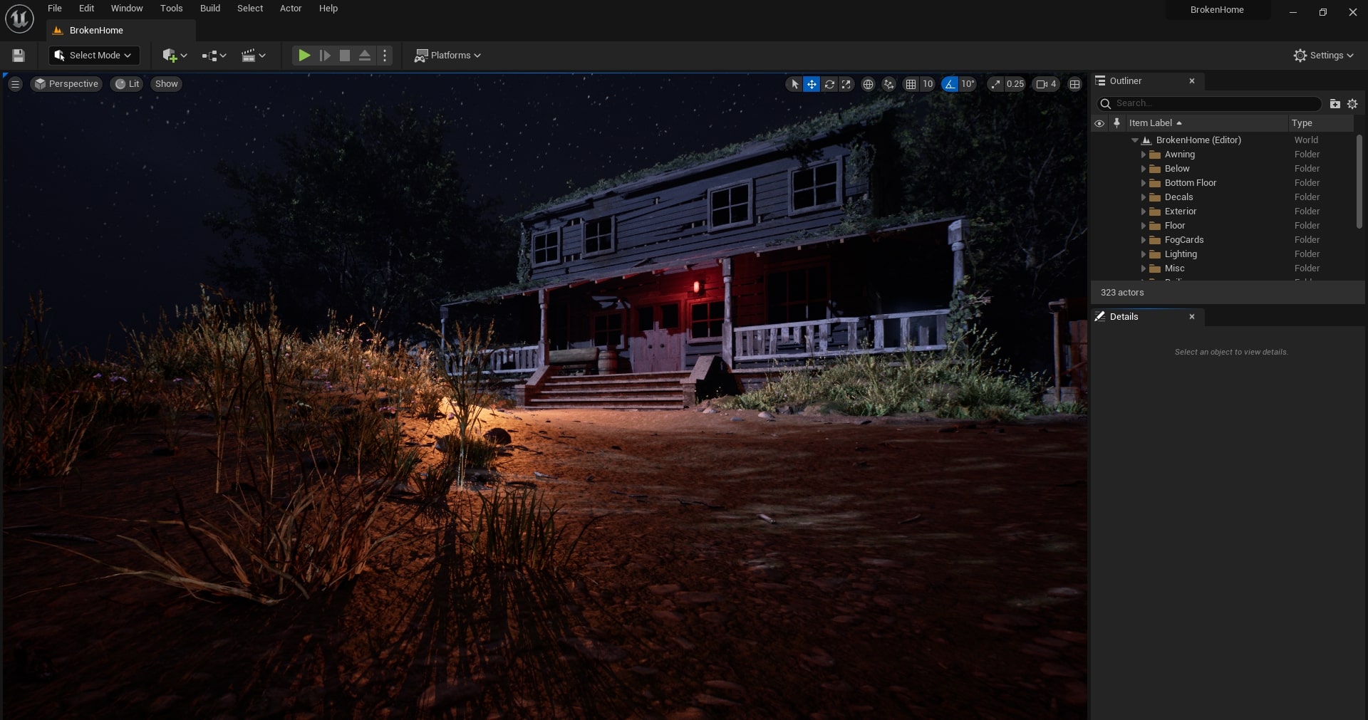 Создание сцены с элементами хоррора в Unreal Engine 5