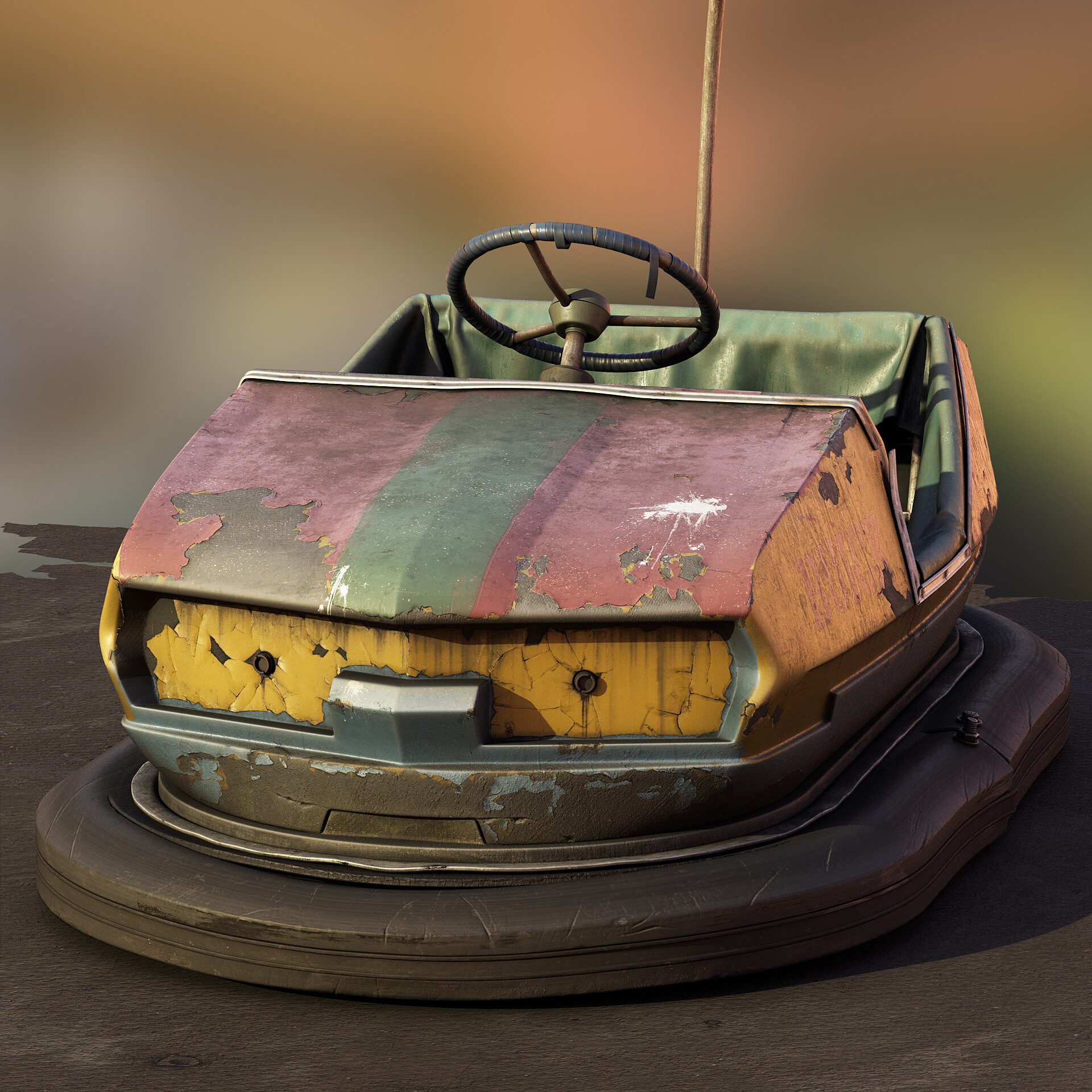 Слава Альпинский рассказал про работу над проектом Bumper Car, поведал, как он создавал металлические, окрашенные и резиновые поверхности, а также поделился методами, которые он использовал для создания ощущения заброшенности.