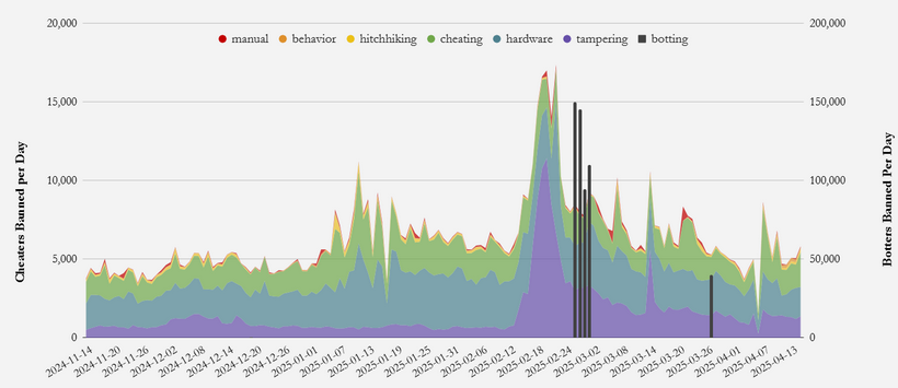 По данным компании, по состоянию на начало 2025 года процент «рейтинговых» игр Valorant, в которых есть читеры, составляет менее 1% по всему миру.