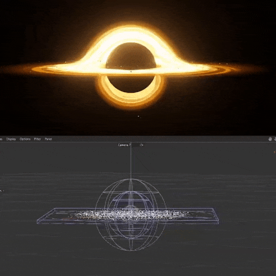 Чёрная дыра в реальном времени с гравитационной линзой и аккреционным диском