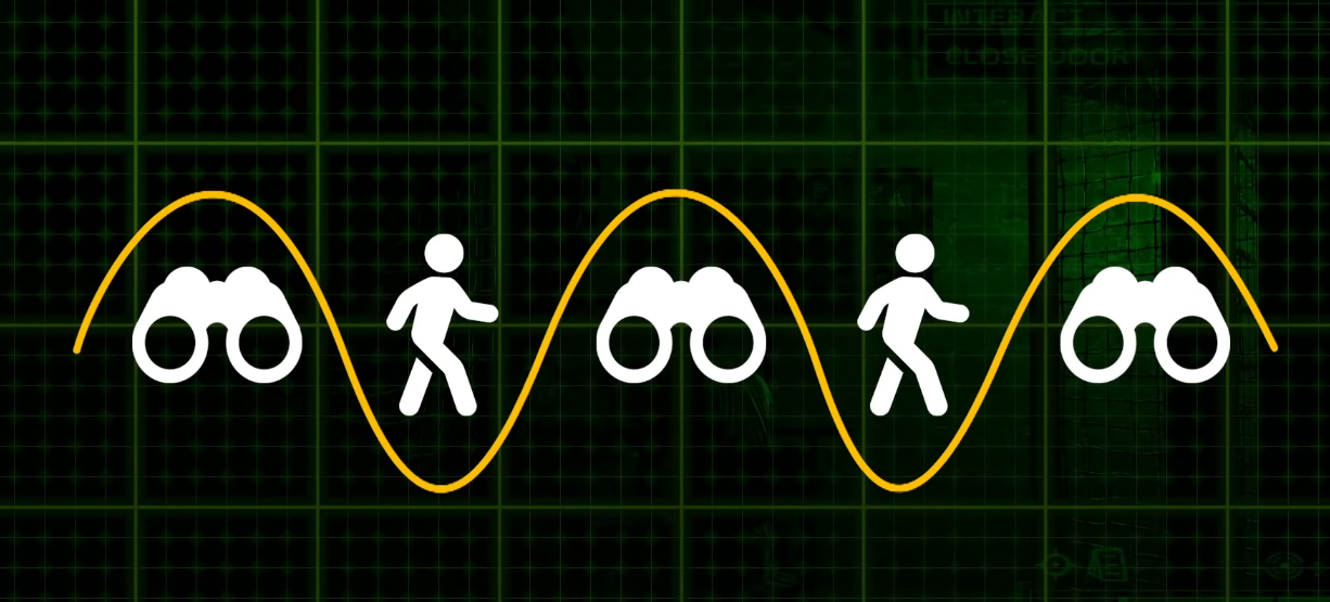 Подобные гаджеты также диктуют темп игры. Ритм стелс игр обусловлен скоростью исследования следующей комнаты и её прохождения. Это постоянный и повторяющийся процесс наблюдения и исполнения.