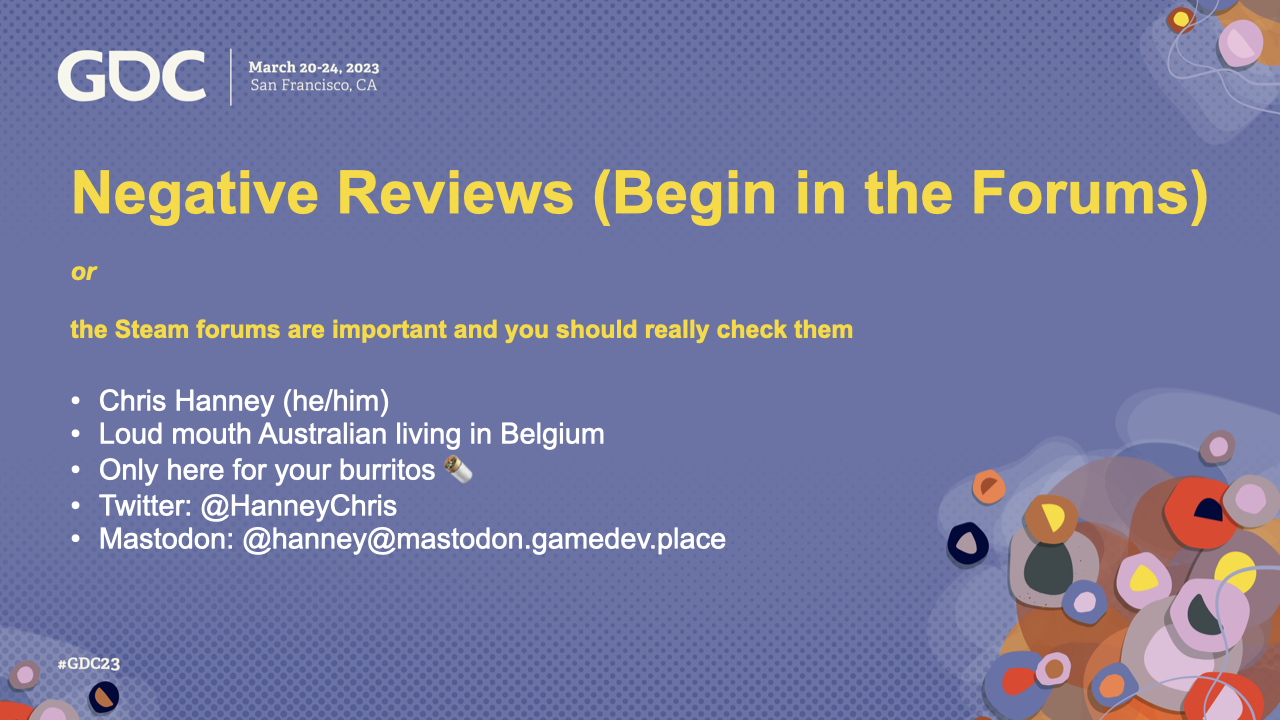 В докладе с GDC 2023 докладчик рассказывает про маиндсет «всем пофиг на вашу игру» и показывает, как эта простая маркетинговая философия может помочь командам сфокусировать свои сообщения в социальных сетях, сделать трейлеры лучше, писать более качественные письма и формировать успешную PR-кампанию.
