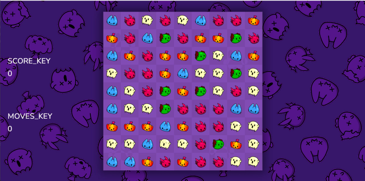 В качестве заднего фона для своей игры автор решил использовать паттерн из игровых персонажей, то есть переиспользовать текстуры. Это позволило сэкономить на размере картинки (да мало, но все же), избавило от мук рисования или лицензирования изображения.