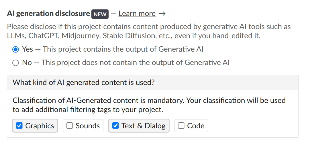 itchIO обязал создателей ассетов сообщать об использовании нейросетей