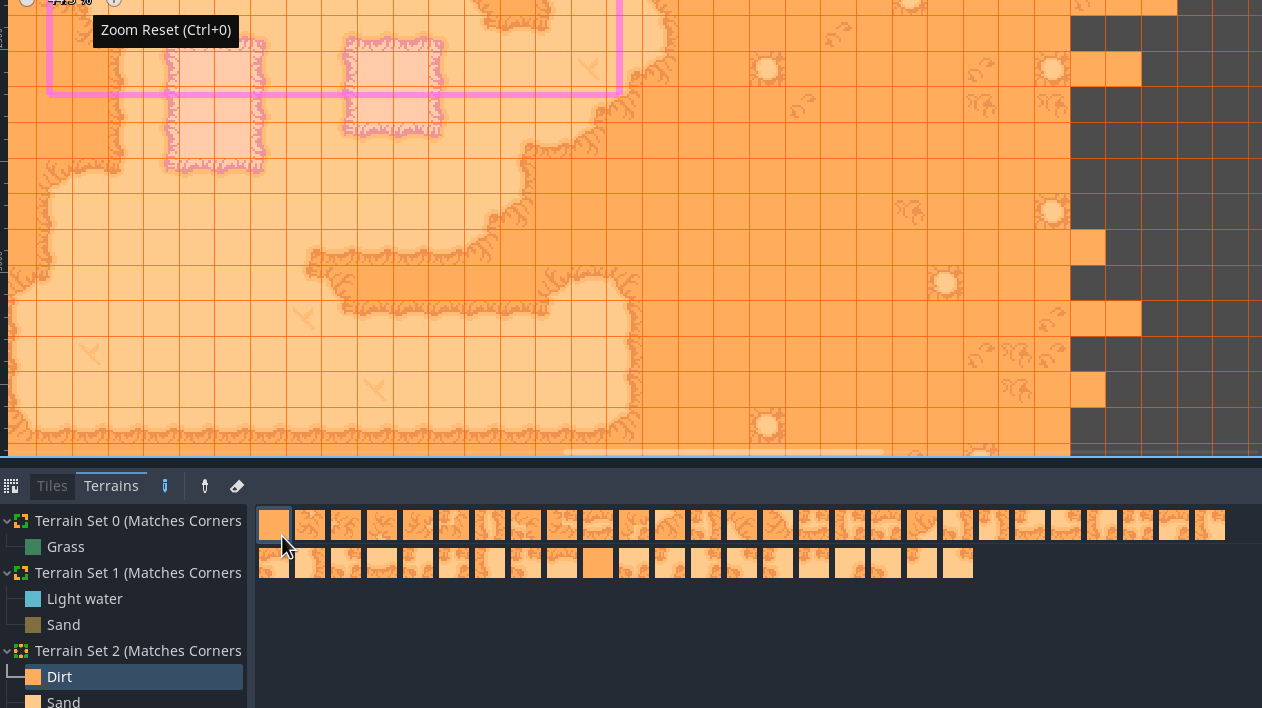 - Реализовано рисование террейна. Подобно тому, что было в autotile, рисование тайлов в режиме террейна также обновит окружающие тайлы.