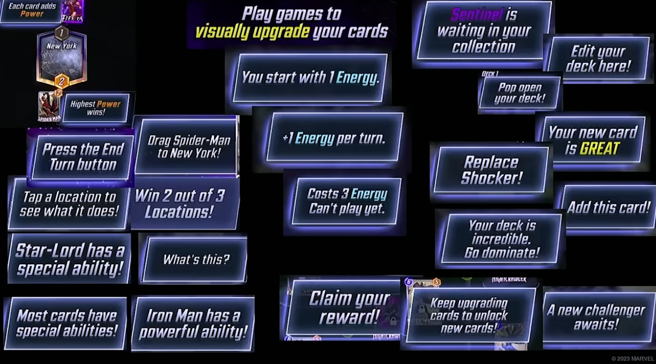 И в Marvel Snap следовали этому правилу. Бен особенно очень гордится, что им удалось упростить текст/подсказки в игре. Если приходится более 1 раза читать описание карты, чтоб понять её работу, такое заворачивалось на плейтестах.