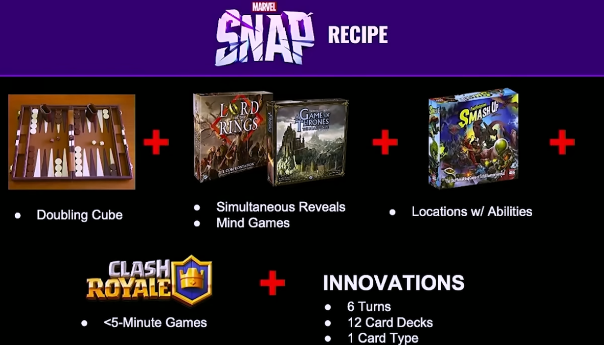 В итоге, если всё обобщить, то финальный рецепт Marvel Snap: нарды + настолки с одновременный раскрытием + локации/абилки + короткие сессии + немного инноваций.