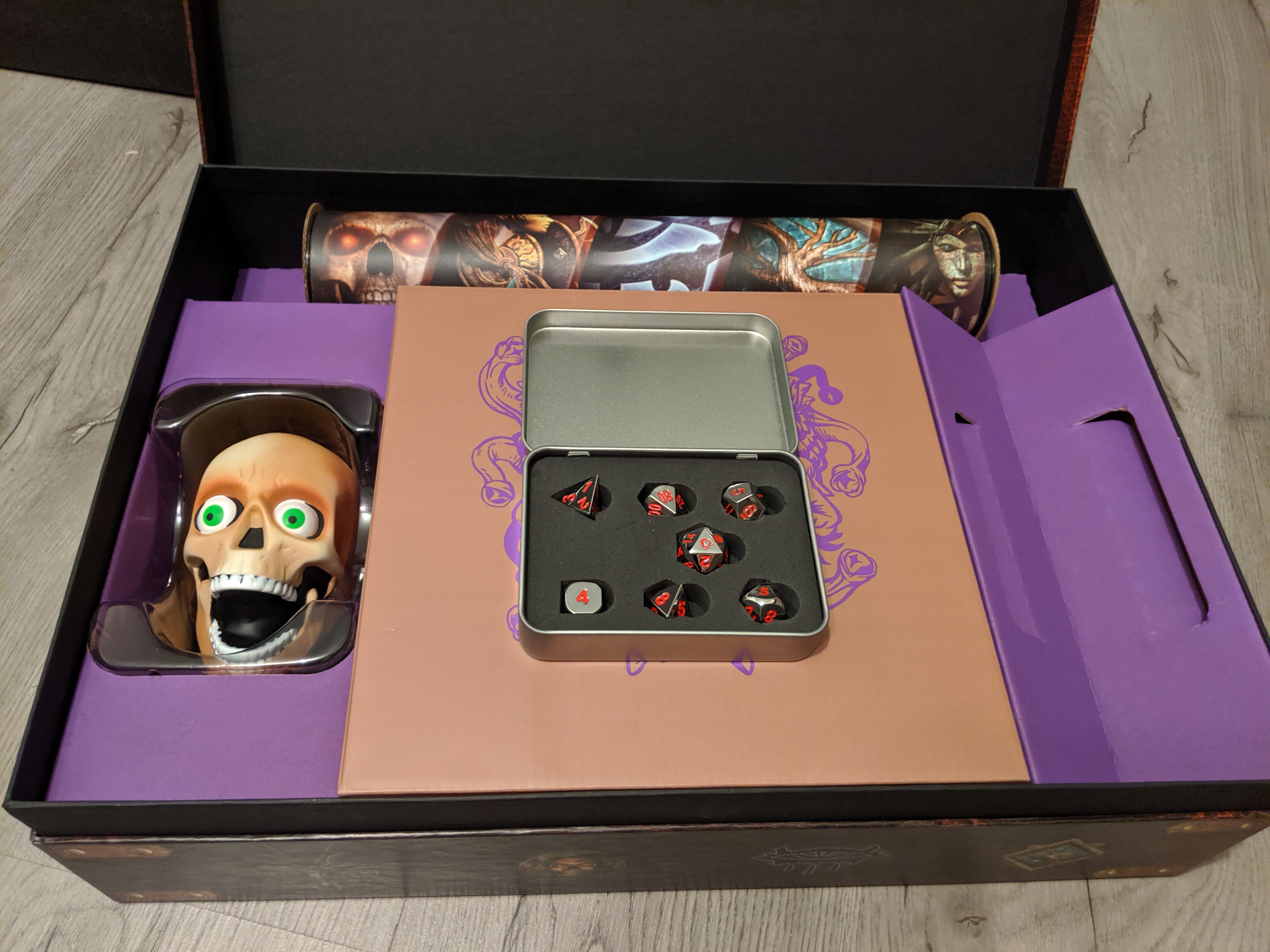 Сама коробочка мультизадачная. Можно выложить дайсы, а контейнер юзать для чего-нибудь повседневного.