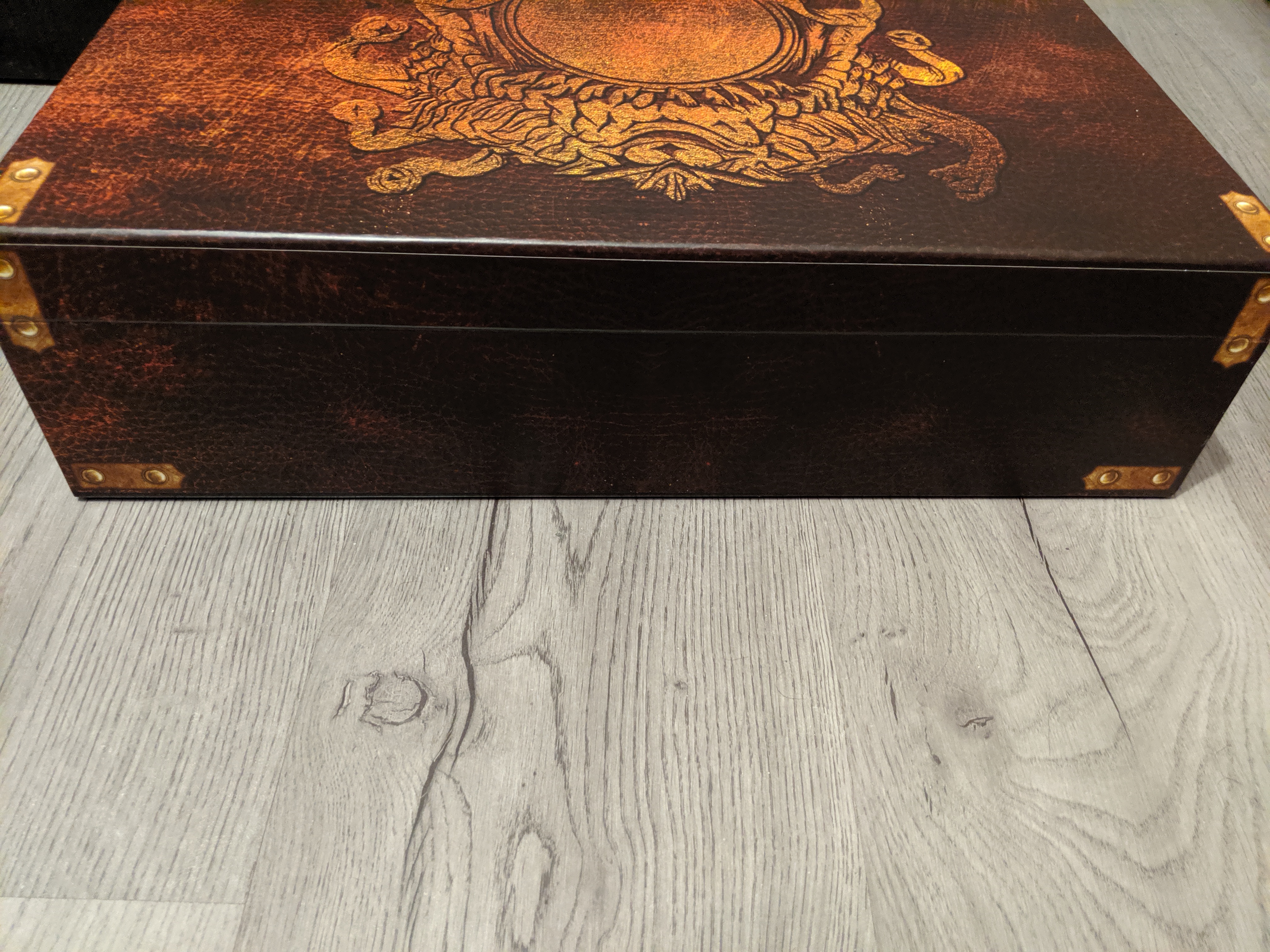 Коробка обычная, обклеена вокруг. Если часто открывать/закрывать, то в месте сгиба развалится обоина.