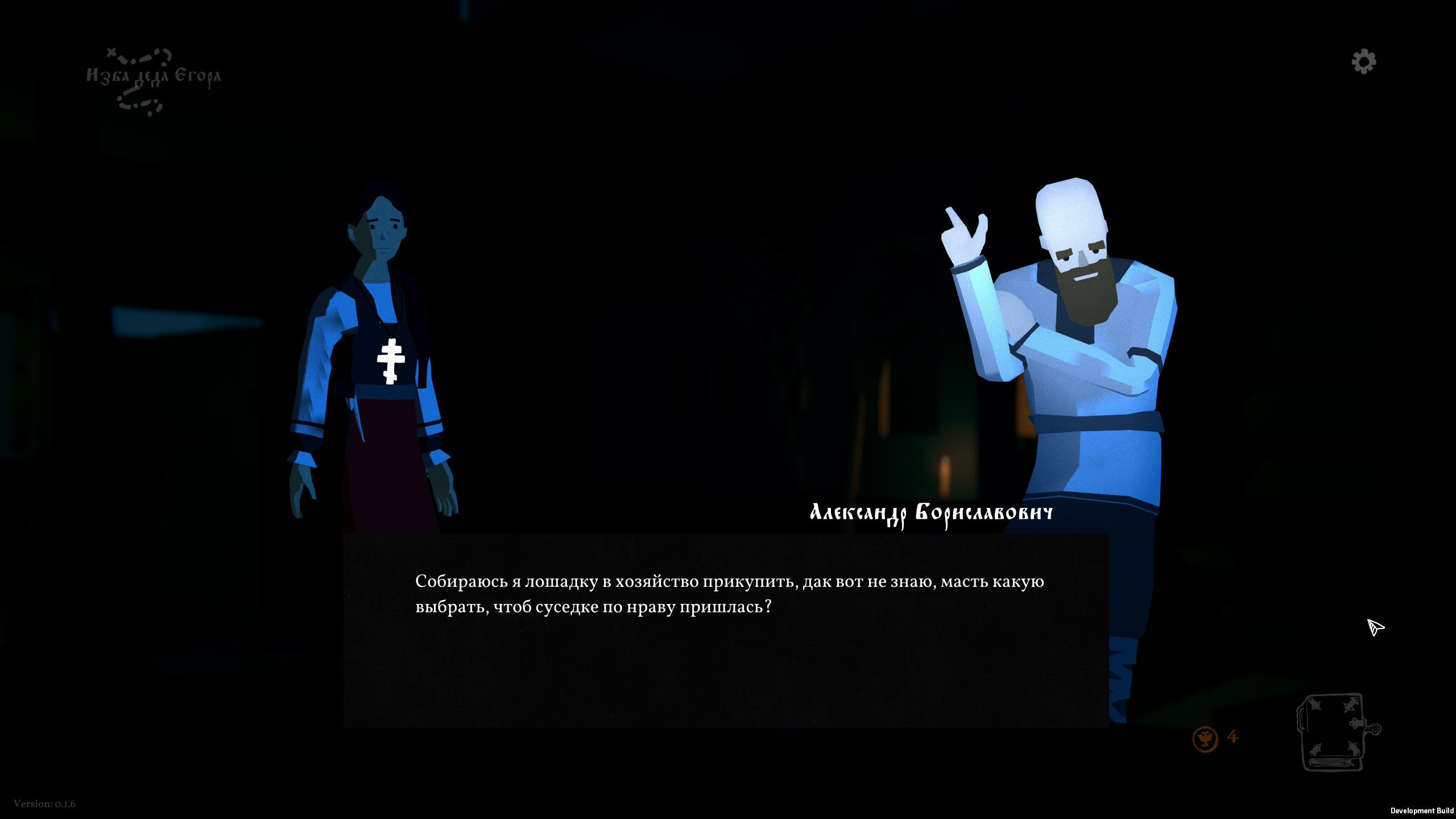 Пришла идея завязать всё на колдунов, где всё вертится вокруг книги, а ты листаешь страницы и выбираешь заклинание из этих страниц. Сначала главным героем был дед Егор, но потом решили, что интересней всё-таки играть за Василису, этакого неофита, который только познаёт колдовское дело.