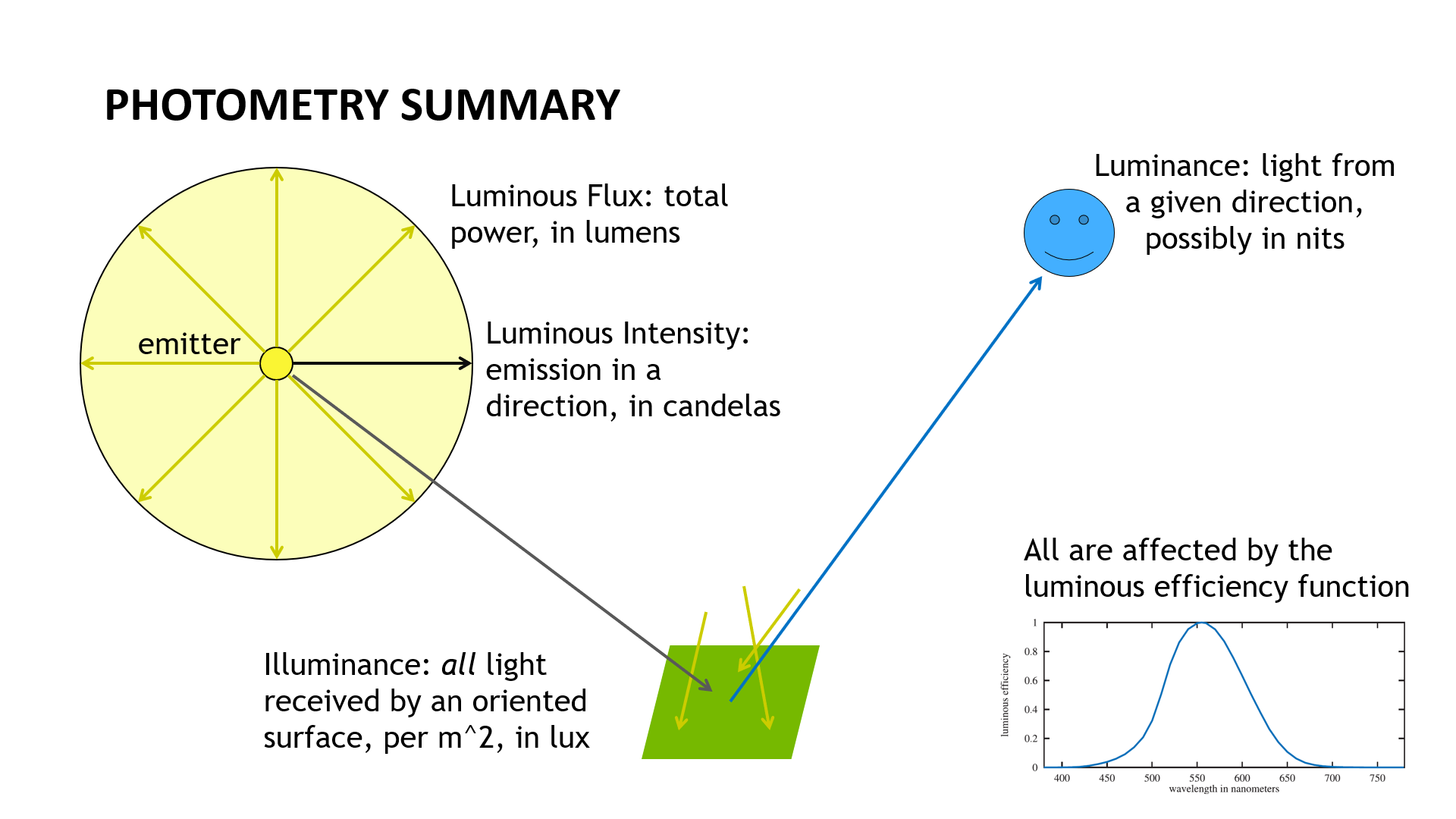 В статье обсуждаются различные физические единицы, используемые для описания света. Даются пояснения для каждой единицы и отношения между ними.