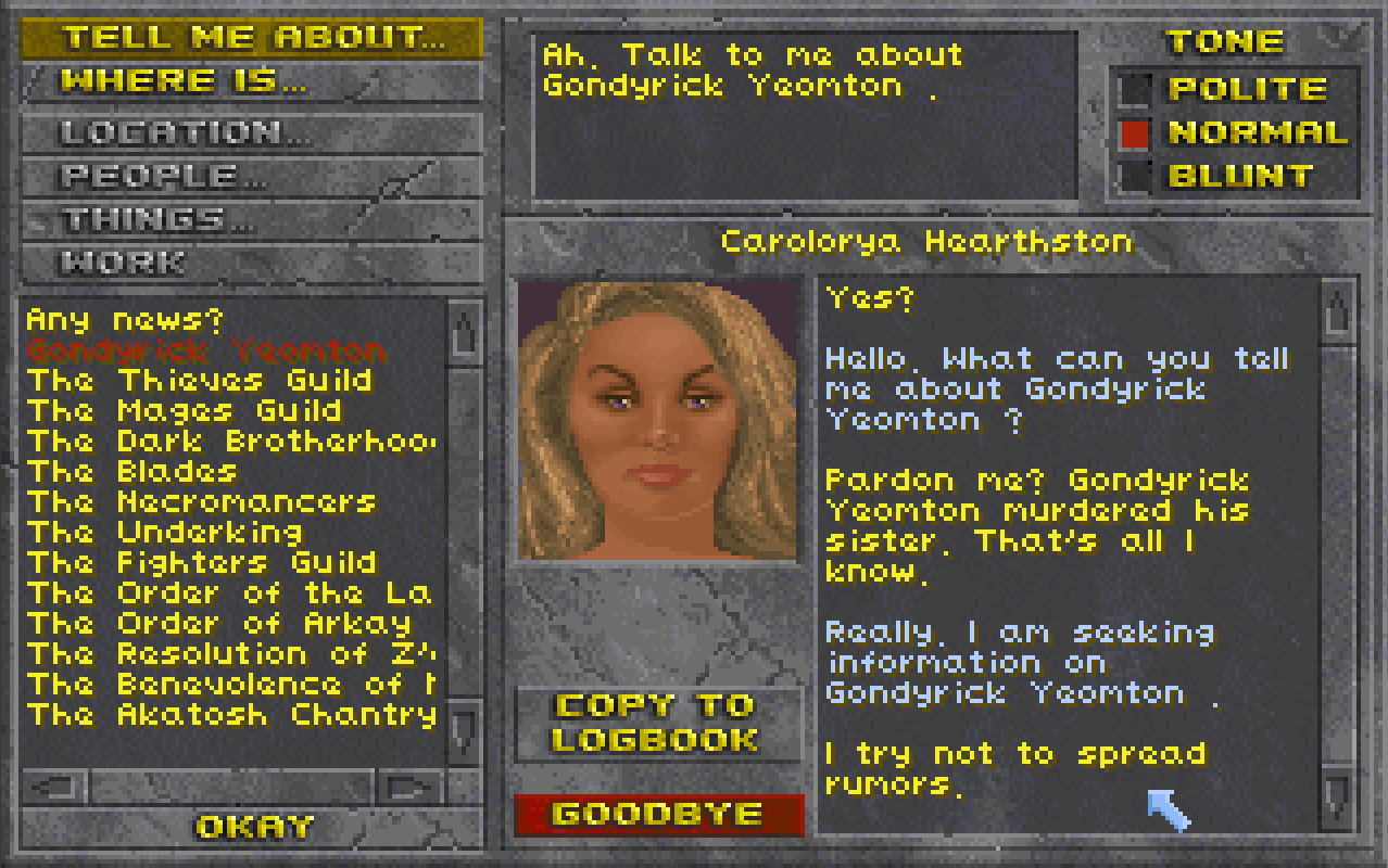 Автор решил поговорить о гипертекстовой или диалоговой системе на гиперссылках в RPG играх.