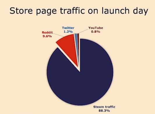 Как пример, пост с гифкой на reddit, который вышел в топ, принёс 200к просмотров Steam странице игры.