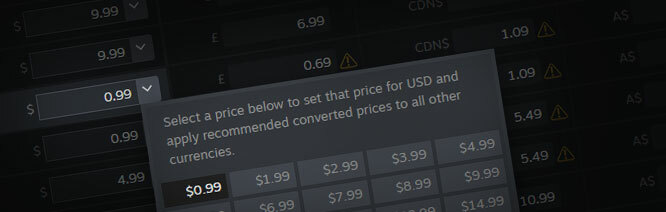 Valve скорректировала минимальную допустимую цену в некоторых валютах, отличных от доллара США, чтобы привести в соответствие с рекомендованными конвертациями валют. Минимум в 0,99 доллара США остается прежним, а обновление приводит минимальные значения в ряде других валют в соответствие с этой ценой.