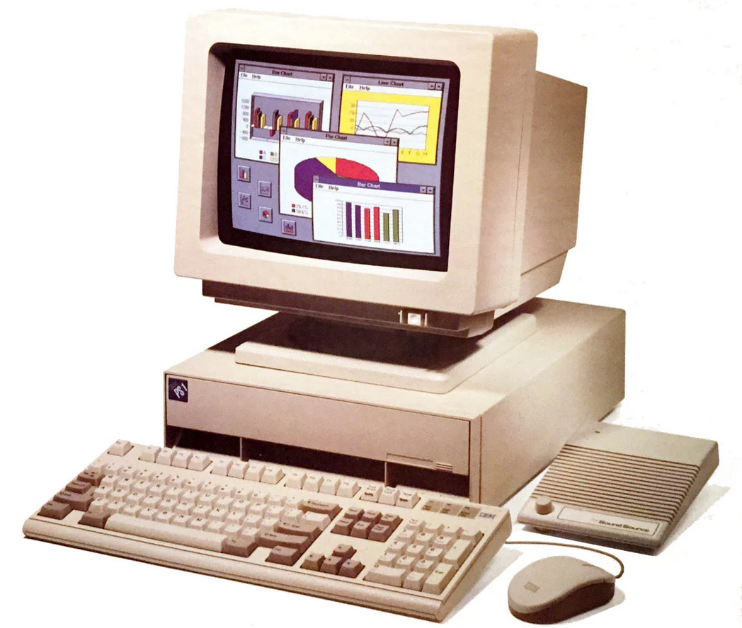 ПК от IBM были построены вокруг концепции «большого ядра» с чудовищным процессором, большим количеством оперативной памяти и всем, что клиент хотел купить в виде дополнительной карты. В 1991 году это дополнение включало графическую карту, которая может быть любой, от TGA, EGA, до последней VGA. То же самое касается аудио части с не менее чем четырьмя типами несовместимых выходов (Beeper, AdLib, SoundBlaster и Disney Sound Source).