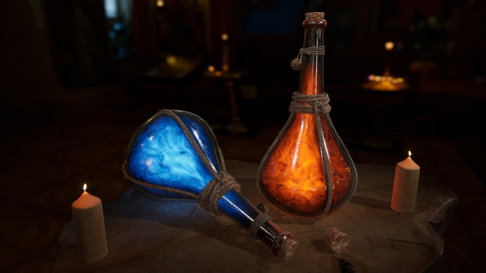 Бутылочки с волшебными зельями, сделанные в Blender, Substance 3D и Unreal Engine 5