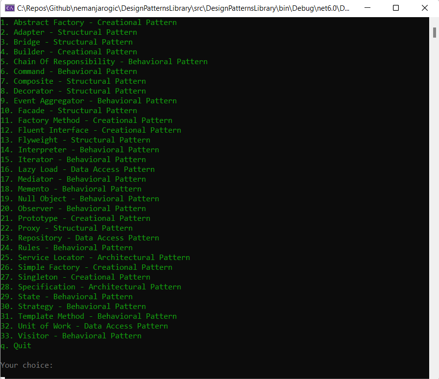 Обширная библиотека, реализованная на C#, которая охватывает различные паттерны, от наиболее часто используемых до менее известных.