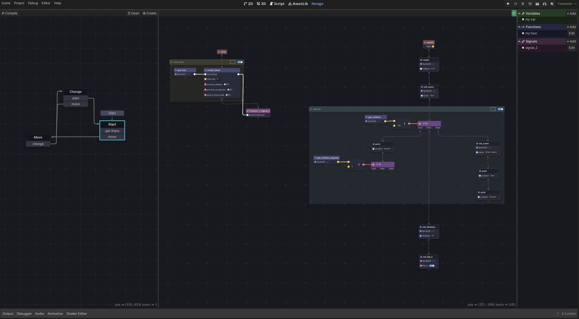 Разработчик Henrique Henrique выложил в опенсорс проект Hengo. Инструмент позволяет работать с Godot без знания GDScript, выстраивая цепочки блок-схем.