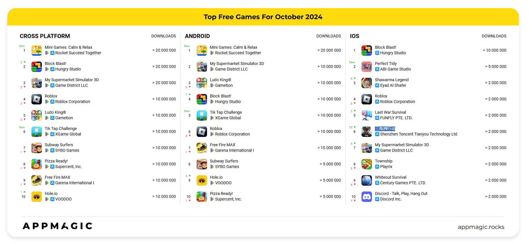 AppMagic: самые скачиваемые и кассовые мобильные игры октября 2024 года