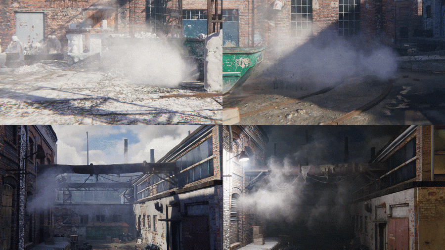 Unity 2022.2 представляет процесс, который позволяет реалистично визуализировать дым из запечённых симуляций. Этот рабочий процесс масштабируется на всех платформах при любых условиях освещения. Это решение также включает в себя библиотеку готовых к использованию запечённых карт.