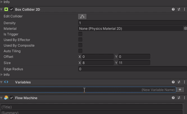 В инспекторе добавляем к объекту компонент Flow Machine.