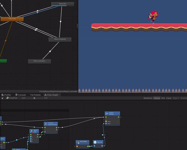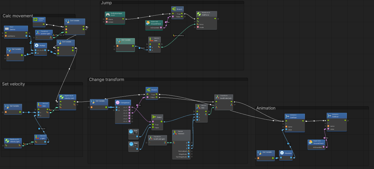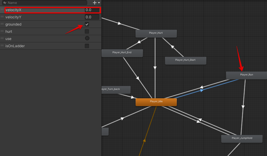 На графе, как я уже сказал, нам нужно всего лишь передать значение скорости аниматору и записать в переменную velocityX.