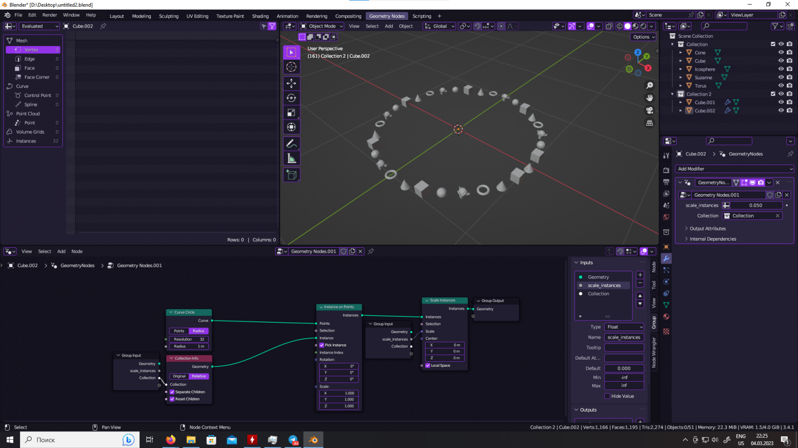 В статье автор показывает как сделать вращение по кругу объектов в blender, используя геометрические ноды.