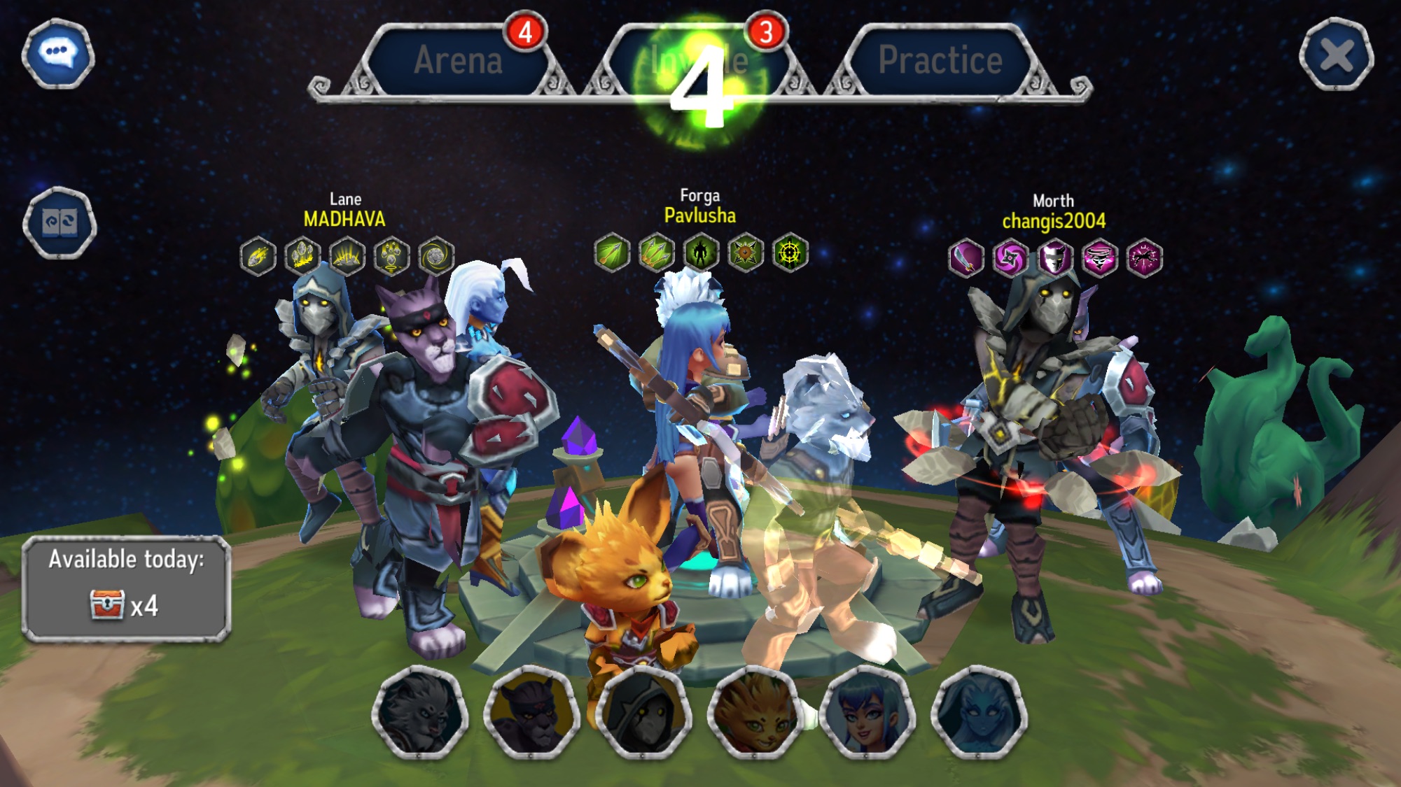 Арены – типичная MOBA 3на3 с разными режимами (захват флага, захват точки и т.д).