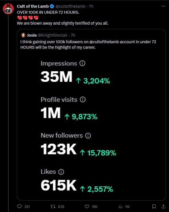 100к+ подписчиков за 72 часа. Всё благодаря твиту про добавление секса в игру