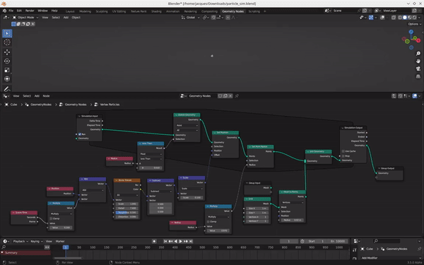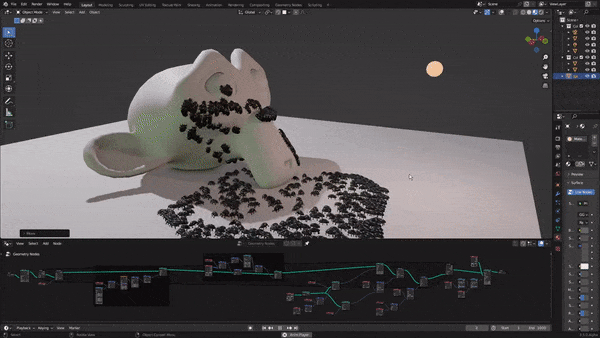 Фреймворк расширяет существующую систему Geometry Nodes для поддержки моделирования на основе частицу. Потыкать можно в экспериментальной сборке.