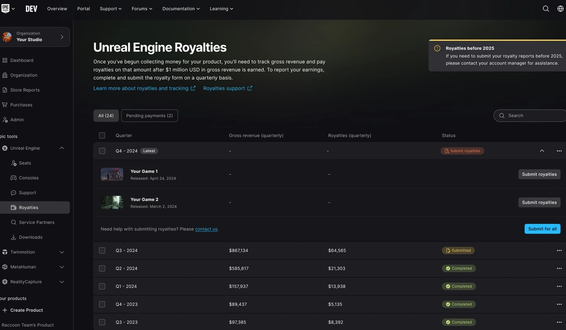 Улучшенный процесс сэкономит время и избавит от догадок тех, кто должен роялти в соответствии с Unreal Engine EULA.
