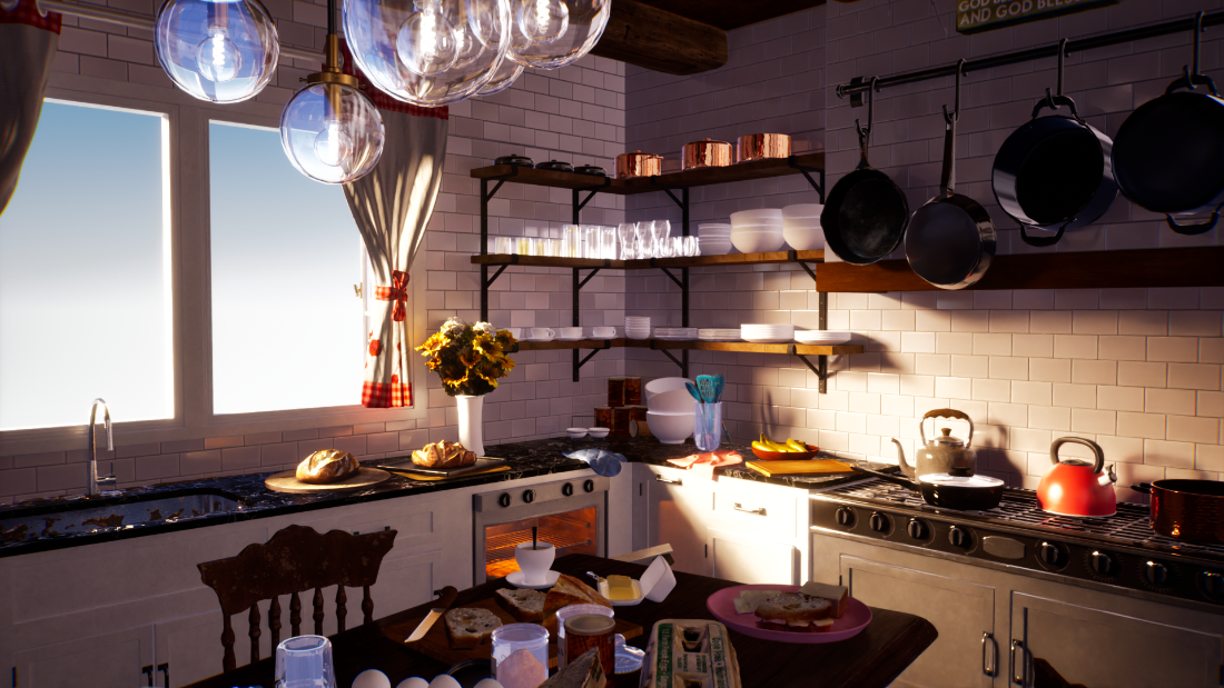 Сама игра на Unreal Engine. Для окружения и света использовался готовый ассет.