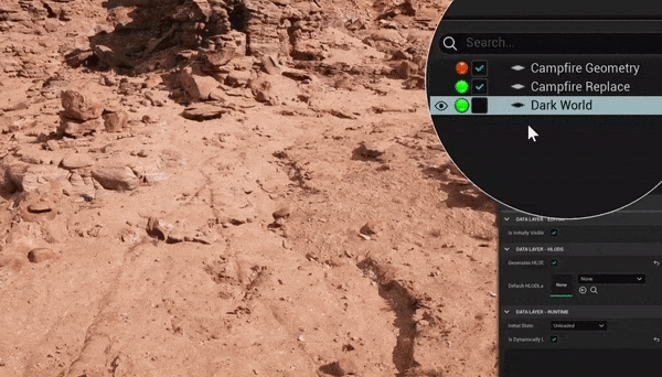 Эти слои можно переключать в рантайме, что позволяет загружать/выгружать тысячи ассетов на лету.