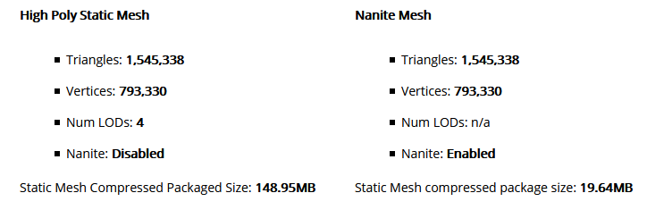 Если верить доке, то у Nanite меша и качество лучше, и размер меньше.
