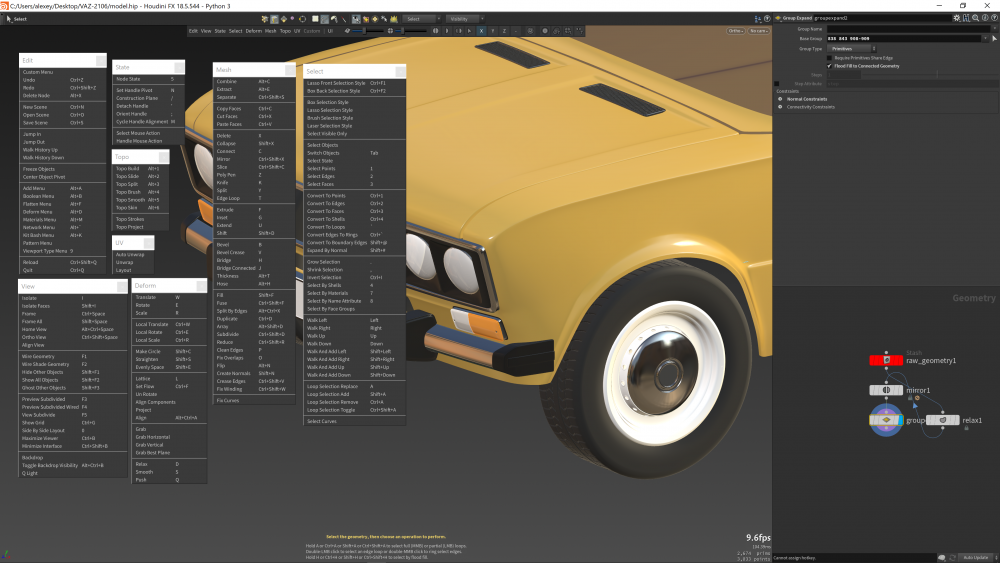 Первоначальная идея заключалась в том, чтобы реализовать классический рабочий процесс моделирования мешей в Houdini. Этот инструментарий даёт пользователям доступ к функциям Standard Houdini и Extended Modeler.