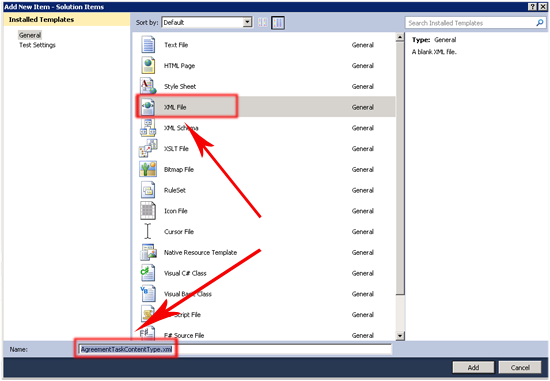 В VS 2010, можно сразу выбрать тип проекта ContentType во вкладке проектов SharePoint->2010. Весь проект будет состоять всего из 1 файла Elements.xml, содержание которого полностью идентично содержанию файла AgreementTaskContentType.xml, описанного выше.