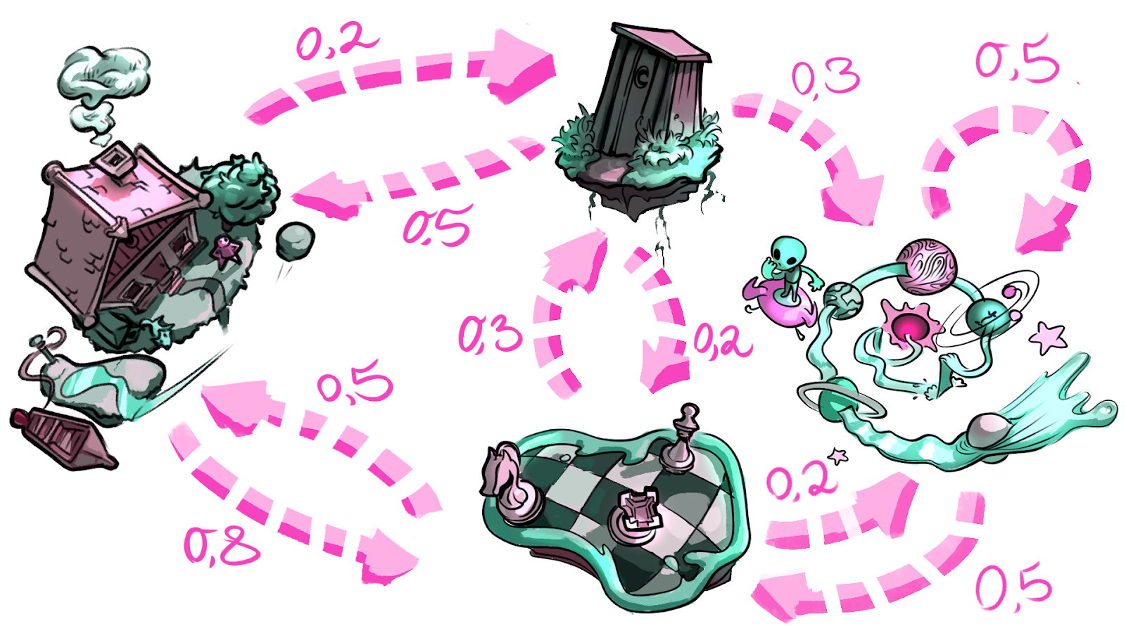 Геймдизайнер из Whalekit в статье разберет две математические концепции: цепи Маркова и случайные блуждания. Статья скорее «поп», чем «науч», поэтому часть доказательств выведенных формул опущена. После теории автор переходит к реальным кейсам, где эти инструменты могут пригодиться.